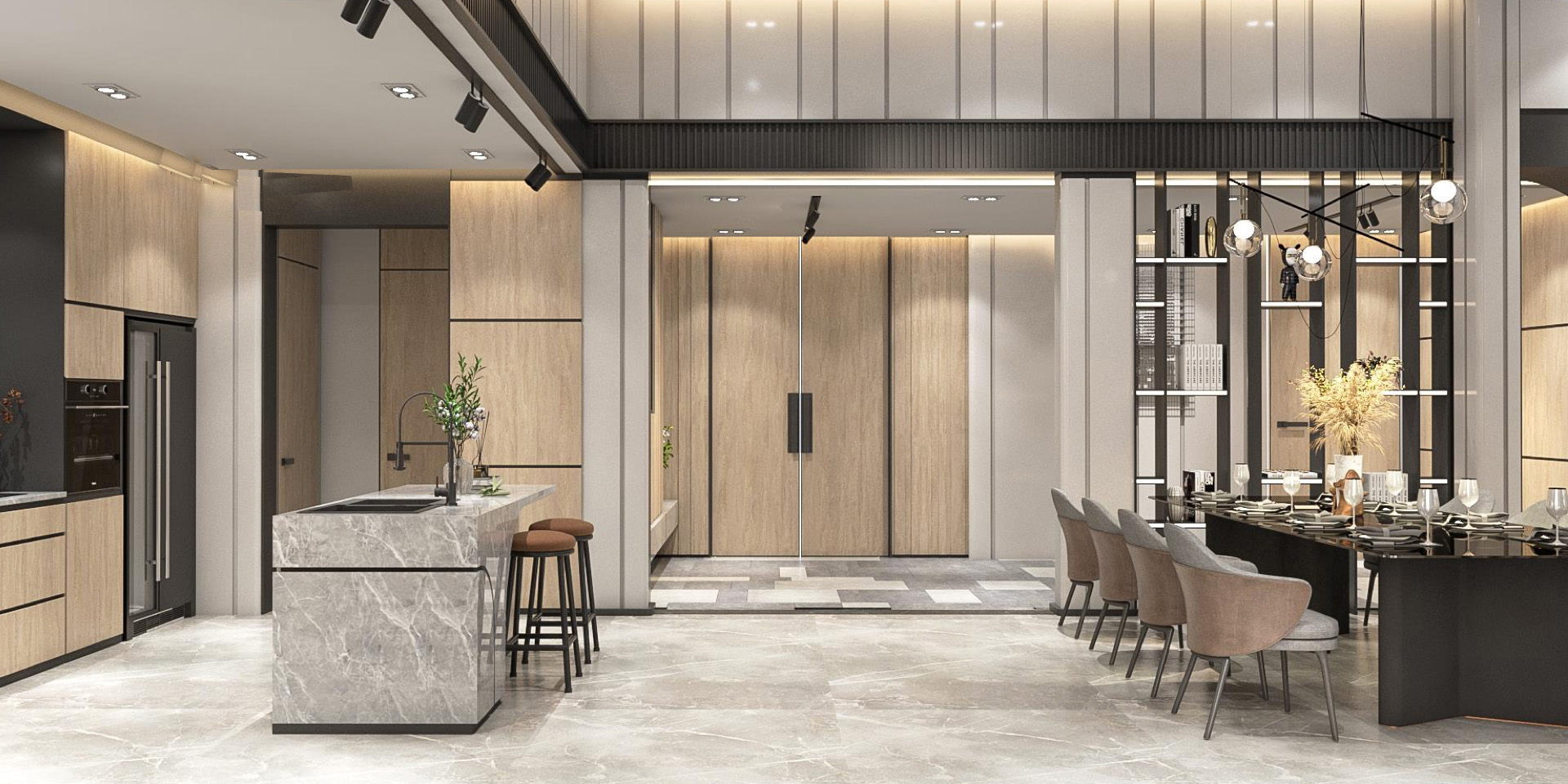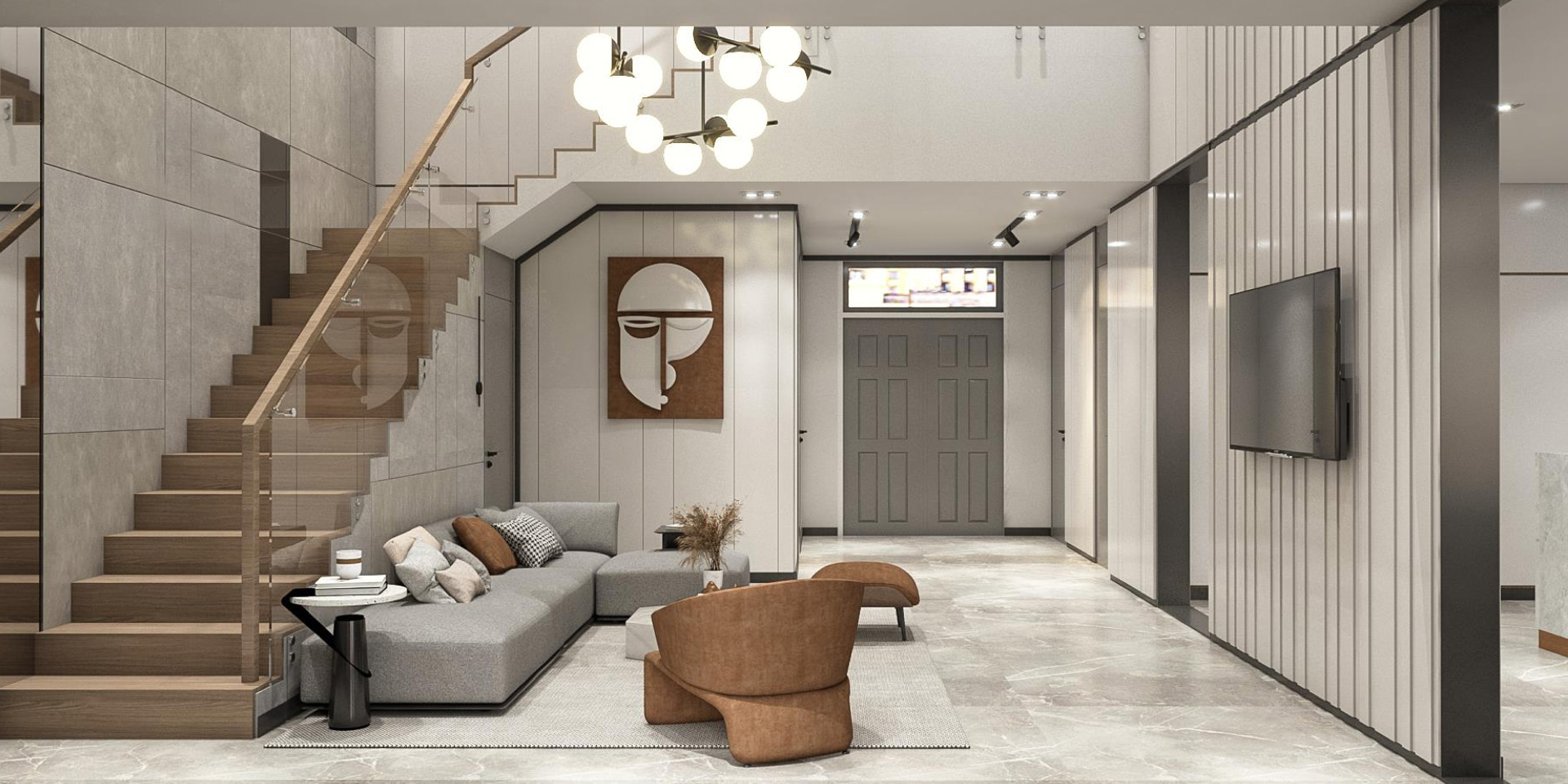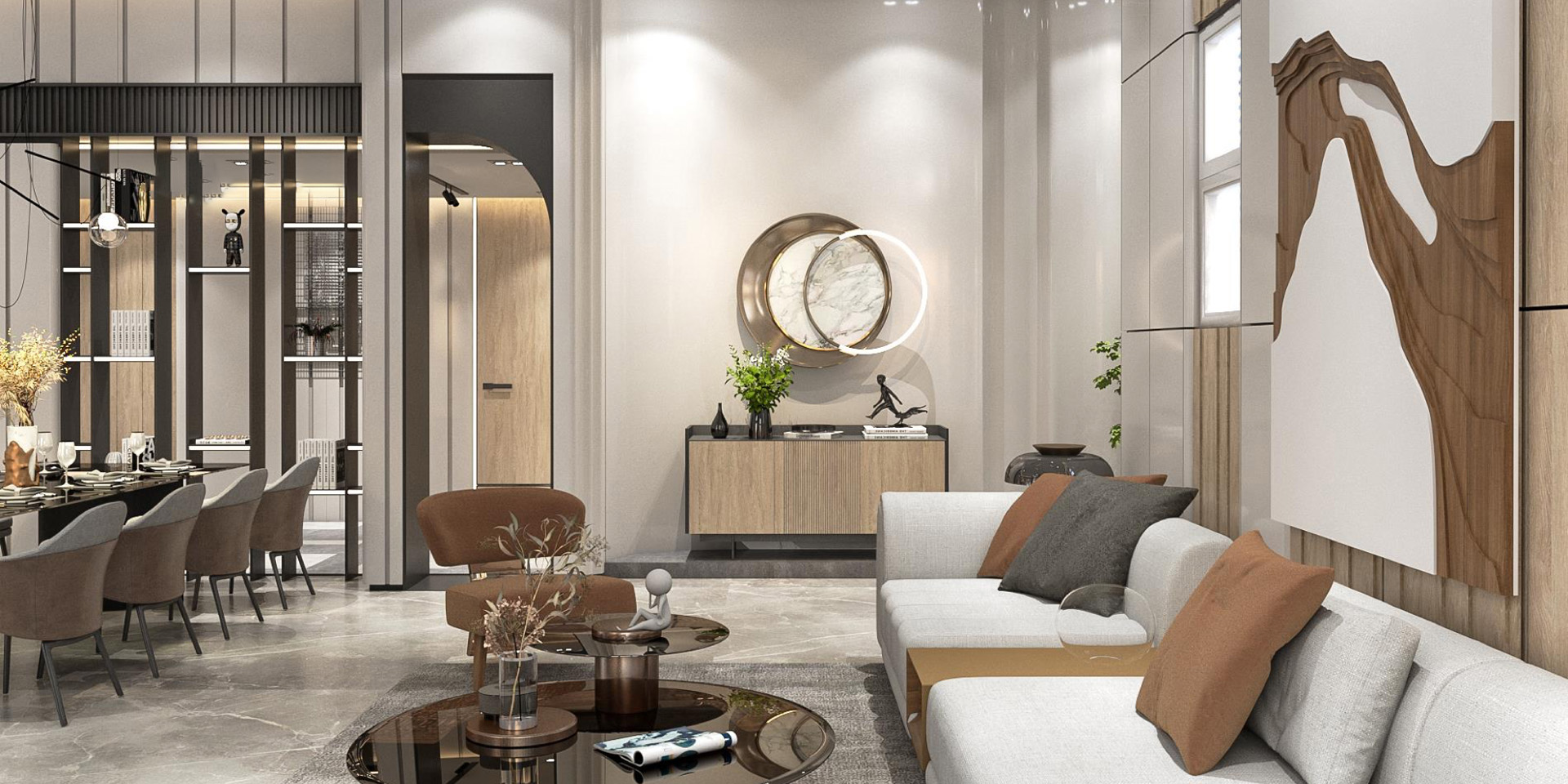 Các đồ nội thất bằng gỗ và nâu nâu có tông màu đất đậm nổi bật trong một biển màu trắng và xám, mang đến một tâm trạng tích cực, làm cho một người trở nên ấm cúng và khuyến khích sự gắn kết gia đình. Cách bố trí thông minh được lên kế hoạch chu đáo để mọi căn phòng đều có thể thực hiện đúng chức năng của chúng, mọi vật dụng đều được đặt đúng vị trí của chúng và Woodsense đã thiết kế không gian hợp lý, tránh cảm giác choáng ngợp hoặc quá lộn xộn, phù hợp với thị hiếu của những gia đình mong muốn sự thoải mái. và hiện đại.